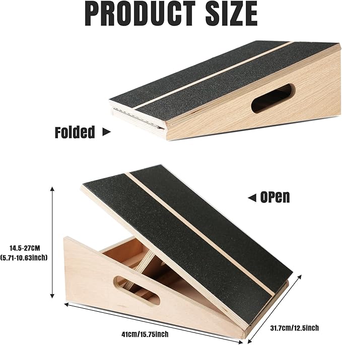 - Sturdy Wood Material - This slant board for calf stretching is made of high-quality sturdy hardwood material, with excellent durability and sturdiness, compared to other wooden slant board for squats is more difficult to damage, this exquisite workmanship is with 450 LBS weight capacity.