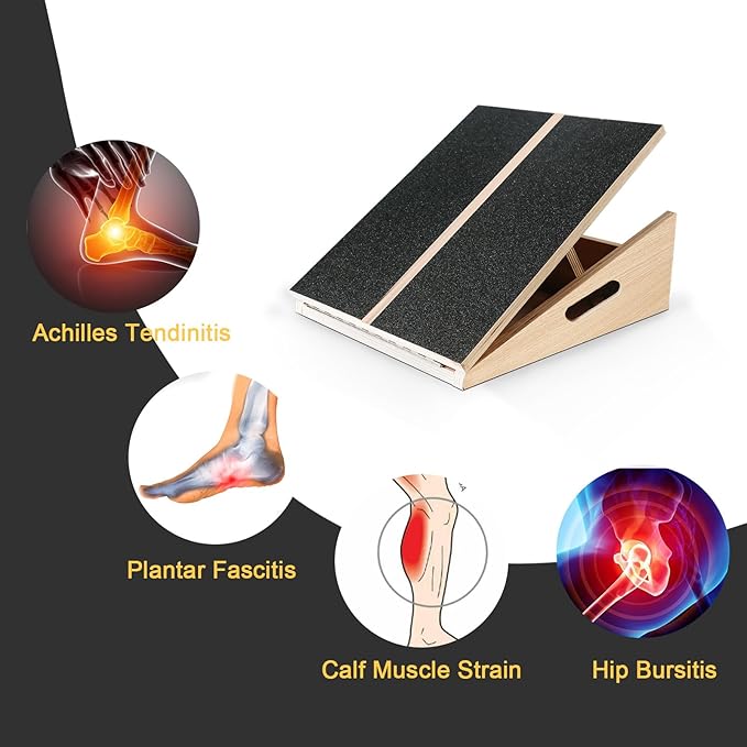 - Health Benefits - This calf stretcher slant board greatly enhance your workout, for pre- and post-exercise stretching, stretching ligaments, bones and joints, can increase body flexibility, relieve muscle fatigue, stress, promote post-exercise recovery, and improve blood circulation in the lower back and legs, which can relieve local pain symptoms, and can be used as a useful aid to rehabilitation training.