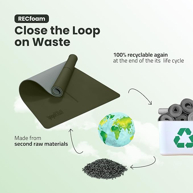 - 【Eco-friendly & Recyclable】Crafted from 100% recyclable premium Recfoam, our large exercise mat is not only durable but also kind to the environment, ensuring no harm to our planet during its lifecycle.