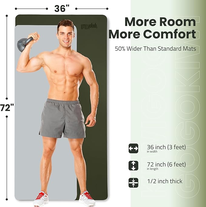 - 【Extra Space for Extra Comfort】 With a size of 72x36 inches, our extra large yoga mat is 50% wider than traditional mats, offering ample space for men and plus-size women to move freely and comfortably during their workout.