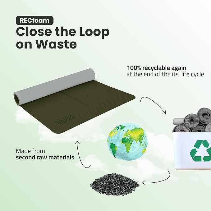 - 【Eco-friendly & Recyclable】Crafted from 100% recyclable premium Recfoam, our large exercise mat is not only durable but also kind to the environment, ensuring no harm to our planet during its lifecycle.