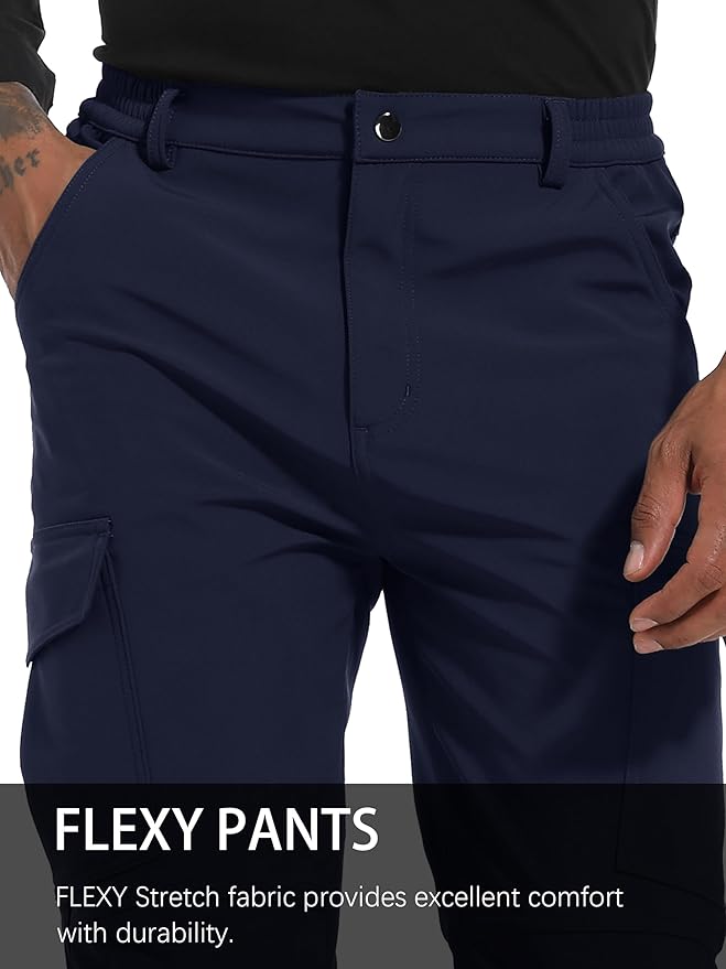 Men's Snow Ski Hiking Pants Winter Fleece Lined Softshell Outdoor Waterproof Insulated Cargo Work Pants