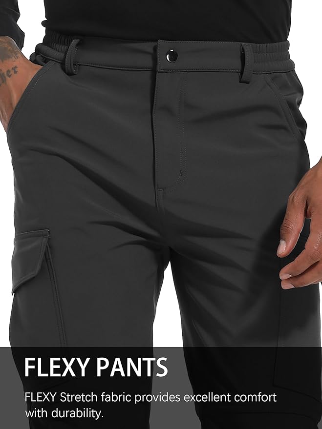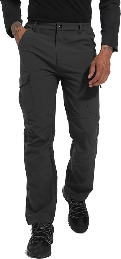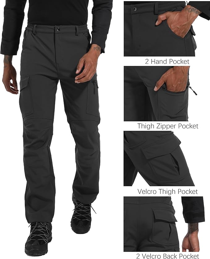 Men's Snow Ski Hiking Pants Winter Fleece Lined Softshell Outdoor Waterproof Insulated Cargo Work Pants