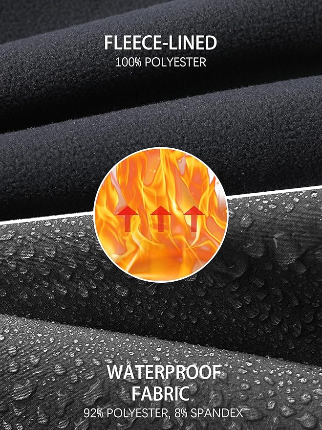 • Men's hiking snow skiing pants are made of 92 % polyester and 8 % spandex, and fleece-lined pants are windproof, waterproof, warm, and comfortable, providing better flexibility even in cold winters.