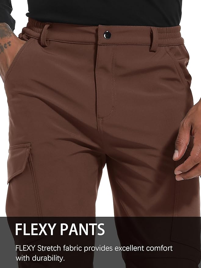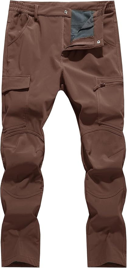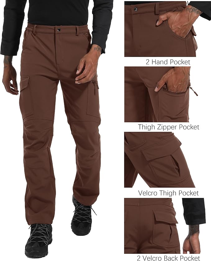 Men's Snow Ski Hiking Pants Winter Fleece Lined Softshell Outdoor Waterproof Insulated Cargo Work Pants