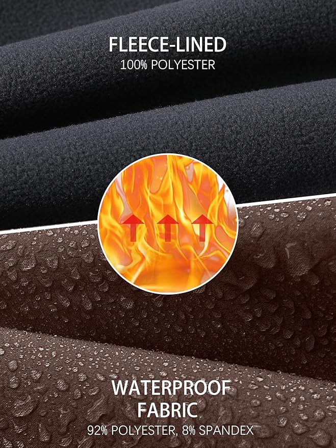 • Men's hiking snow skiing pants are made of 92 % polyester and 8 % spandex, and fleece-lined pants are windproof, waterproof, warm, and comfortable, providing better flexibility even in cold winters.