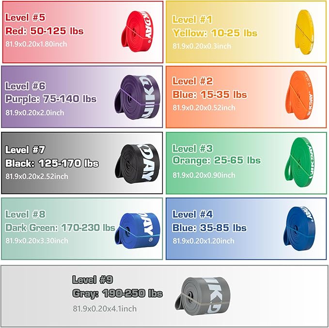- [Multifunctional Exercise Bands]--Our long resistance bands, ideal for pull ups, are perfect for mastering pull-ups, ring dips, and muscle ups. These pull-up bands assistance bands are versatile for men and women, facilitating body resistance training and physical therapy to strengthen ligaments or muscle tears. They're great for exercising arms, back, legs, and buttocks, serving as stretch bands, gym bands.