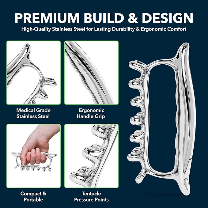- Crafted from medical-grade stainless steel, the PZHZ Fascia Blaster is engineered for durability and effectiveness. Its precisely placed pressure point massage tool design delivers a therapist-like touch, allowing you to control the pressure and pace for an optimized, personalized recovery experience.
