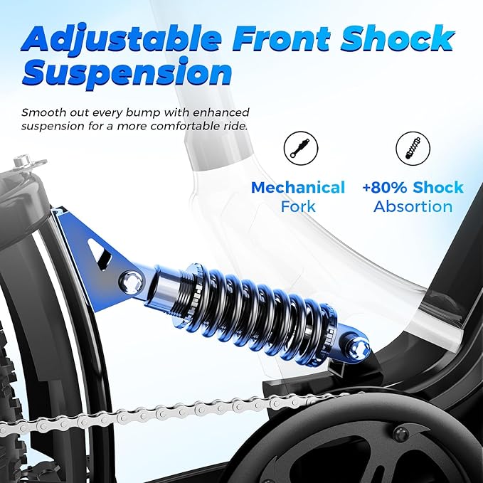- 【DUAL SUSPENSION & DISC BRAKES】Equipped with a lockable and adjustable front suspension downhill fork. Additionally, the electric bike for adults features 180mm dual disc brakes, providing enhanced braking performance in various conditions such as rain, off-road terrain, long downhill slopes, and challenging environments. These features not only improve comfort but also enhance the overall enjoyment of your riding experience.