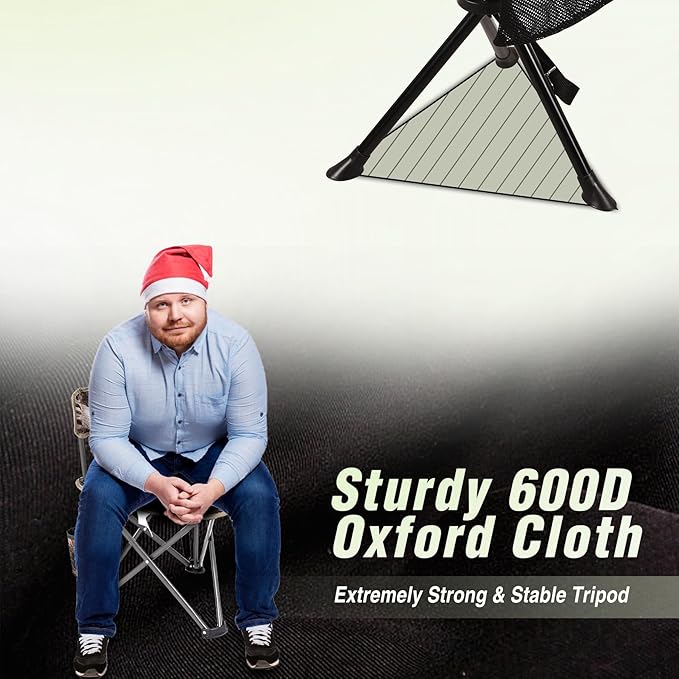 - [More Comfortable] Finished with double layer oxford on the tripod seat surface, more durable and stable, These tripod camp stools for adults 300lbs fit big and tall person to enjoy a comfortable experience.