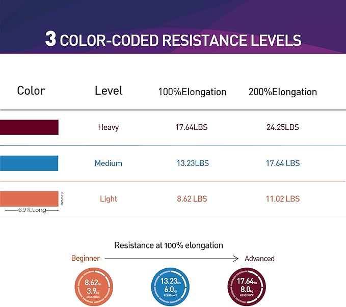- 【Fun & Easy To Use】 The Bands are Perfect for Resistance Training and Rehabilitation, Which Provides Both Positive and Negative Force. You Can Take a Couple Wraps Around Your Hands for More Tension and a Secure Grip. or Just Tie a Knot, For Use as a Loop Band, and also You Can Double Them Up for Even More Resistance. The Bands are Vibrantly Color-Coded, Once You are Ready for a More Challenging workout, You can Move Up to The Next Color.