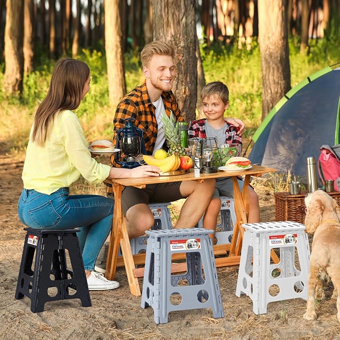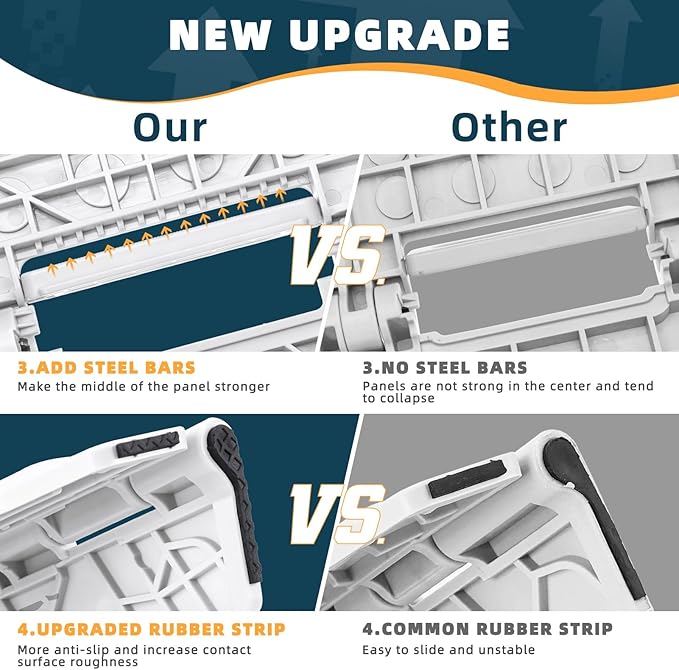 - Non Slip: The special rubber dot textured surface makes the foldable step stool more non-slip, so you don't have to worry about slipping when you stand on it. The bottom corner of the four feet of the stepping stool are upgraded to black non-slip dot textured rubber straps for superb grip , will be more non-slip compared to the original non-slip rubber straps. So it is a perfect companion in the bathroom and kitchen.