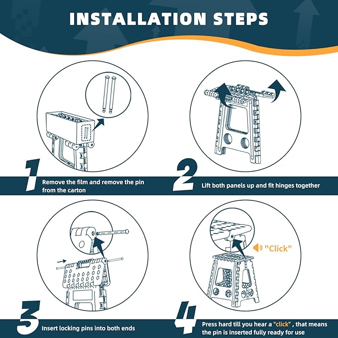 - Tip: If you receive the collapsible step stool and find that there is no pin, you can contact us and we will help you to send you a replacement pin. We provide three months after-sales service, if you have problems, please feel free to contact us.
