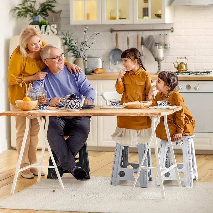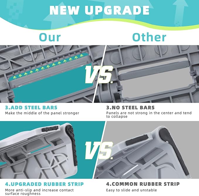 - Non Slip: The special rubber dot textured surface makes the foldable step stool more non-slip, so you don't have to worry about slipping when you stand on it. The bottom corner of the four feet of the stepping stool are upgraded to black non-slip dot textured rubber straps for superb grip , will be more non-slip compared to the original non-slip rubber straps. So it is a perfect companion in the bathroom and kitchen.