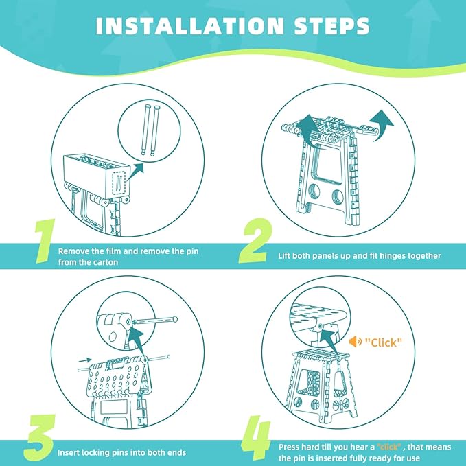 - Tip: If you receive the collapsible step stool and find that there is no pin, you can contact us and we will help you to send you a replacement pin. We provide three months after-sales service, if you have problems, please feel free to contact us.