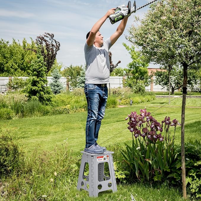 ACSTEP Folding Step Stool 17.5 Inch Heavy Duty Step Stool Foldable for Adults and Kids, Collapsible Stepping Stool with Handle, Non Slip Folding Stools for Kitchen Hold Up to 400lbs (Grey 1PC)