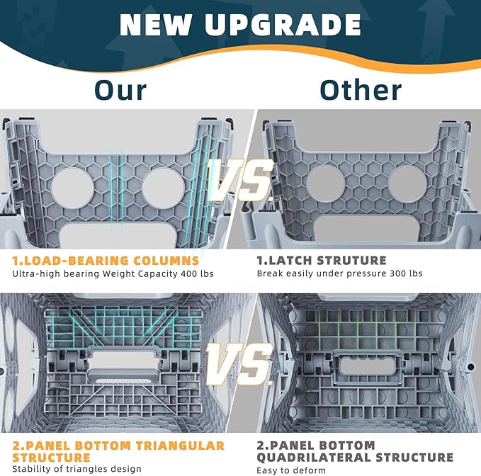 - Loads Up to 400lbs: ACSTEP pin structure stool is patented. Folding step stool has been reinforced with locking pins and fixed hinges to prevent danger of falling off and enhance stability and bearing capacity effectively. Inner honeycomb structure is uniquely designed in such a way that makes the stool extra strong and safe. Tested to hold up to 400 LBS, this folding stool offers great stability even when loaded.