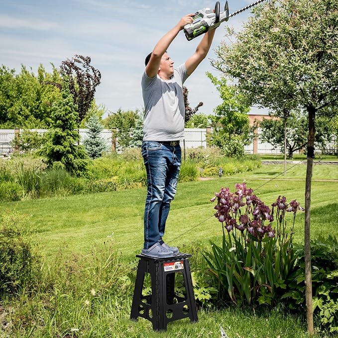 ACSTEP Folding Step Stool 17.5 Inch Heavy Duty Step Stool Foldable for Adults and Kids, Collapsible Stepping Stool with Handle, Non Slip Folding Stools for Kitchen Hold Up to 400lbs (Black 1PC)