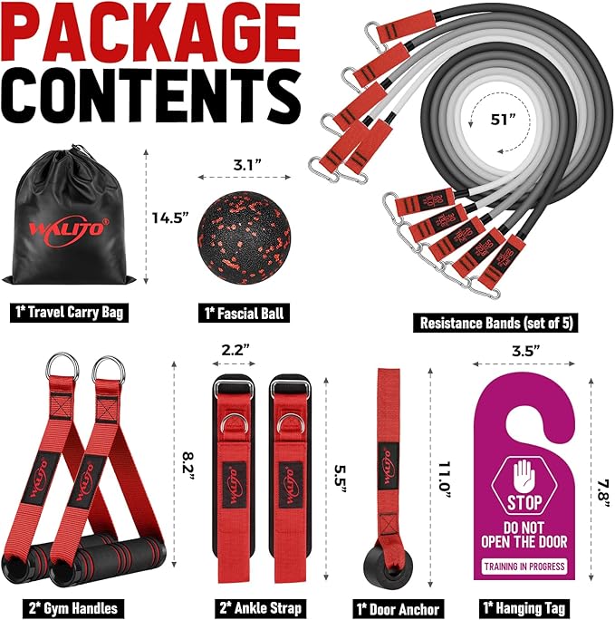 WALITO Resistance Bands Set - Exercise Bands with Handles, Door Anchor, Legs Ankle Straps, for Heavy Resistance Training, Physical Therapy, Muscle Training, Yoga, Home Workouts