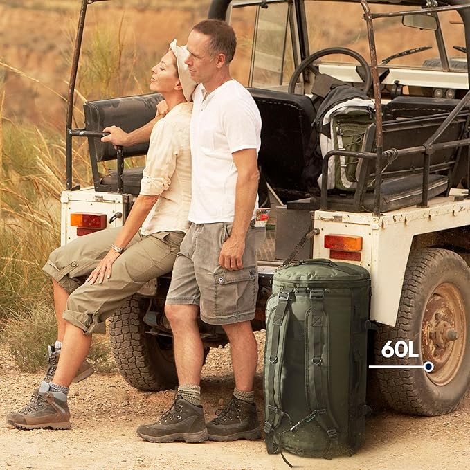 Haimont Large Duffle Bag Backpack for Men Women, 60L Convertible Travel Duffel Bags with Shoes Compartment, Carry on Durable Duffle for Sports Gym Hiking Camping, Water-resistant, Army Green