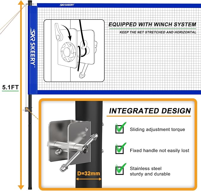 - 𝙉𝙚𝙬𝙡𝙮 𝙪𝙥𝙜𝙧𝙖𝙙𝙚𝙙 𝙞𝙣𝙩𝙚𝙜𝙧𝙖𝙩𝙚𝙙 𝙬𝙞𝙣𝙘𝙝 𝙨𝙮𝙨𝙩𝙚𝙢:Badminton net is equipped with a winch system, combined with a high strength nylon rope on the top of the net, which can better keep the net pulled tight and horizontal, made of stainless steel, with sliding adjustable torque and fixed handle, which is not easy to be lost and more convenient to use;