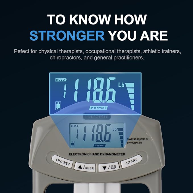 - Accurate Measurement: The included dynamometer meter features a high-precision strain gauge sensor, accurately measuring your grip strength up to 198Lbs / 90Kgs with 0.2Lbs / 0.1Kgs increments.