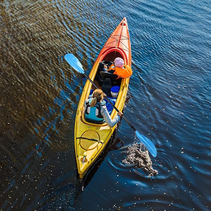 - 【LIGHTWEIGHT AND COMFORTABLE TO USE】Designed with ultralight materials, our kayak oars reduce hand fatigue, making it ideal for long paddling sessions. Its ergonomic design ensures a comfortable grip, making it an excellent choice for beginners, experienced kayakers, or anglers. Whether you're fishing, touring, or exploring, paddle with confidence and stay safe on every adventure.