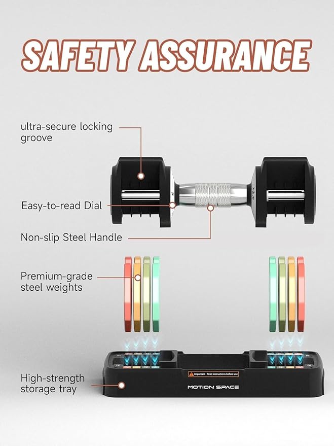 - 🥇【SAFETY DESIGN】With its innovative count weight plate design, it easily adjusts the weight by holding the handle and turning the pointer to the desired number. Our latest design includes 8 locking mechanisms, providing stability and ensuring safety during workouts.