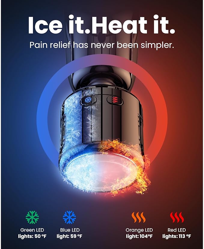 - Deep Tissue Massage Gun with Cold and Heat for Powerful Pain Relief: Seamlessly combines cold therapy and heat therapy, choose between 2 optimized presets for fast and precise temperature control and targeted pain relief. Whether used for surgery recovery or sports injury, Cold therapy helps support sore muscles and joints.Heat therapy helps combat the soreness that stops you from feeling your best.