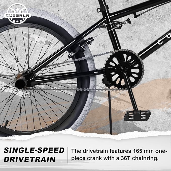 - Easy-to-Ride Design - This BMX bike features a drivetrain with a 165mm one-piece crank and a 36T chainring, and front and rear aluminum brakes for precise speed control. Its hand-brake levers enhance safety and make riding easier.