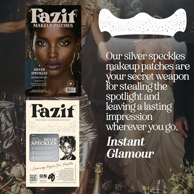 - EASY TO APPLY - Applying our Fazit facial glitter speckle patches is effortless! Remove the backing by peeling it off, then apply the sticky side to your skin. After that, dampen a towel and apply pressure to the patch for sixty seconds. When the make up patch is finally removed, reveal your gorgeous new glitter speckles. It's easy - no mess, no fuss, just natural-looking glitter cosmetic speckles in minutes. Ideal for those wanting to enhance their look with a touch of glitter sparkle!