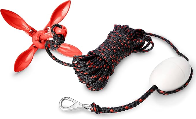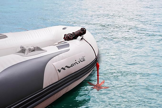 - MARINE GRADE: The anchor is with 50 feet marine grade rope. It also includes a flotation buoy and stainless steel snap hook for quick and easy connections.