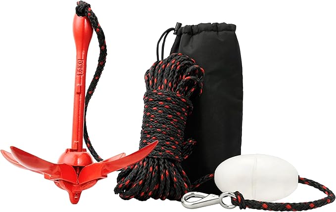 - GET EVERYTHING IN ONE KIT: Complete kayaking/paddle board anchoring kit including 3.5lb folding anchor, 40 foot rope, spring hook and storage bag