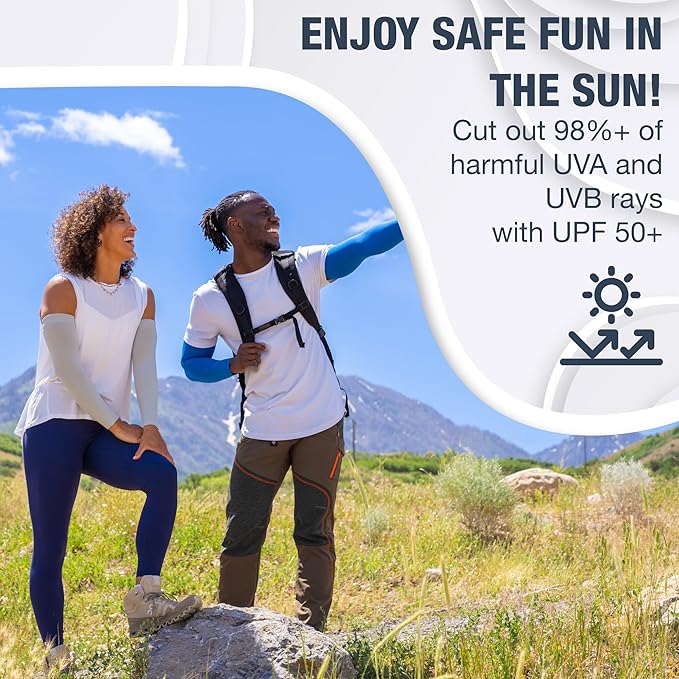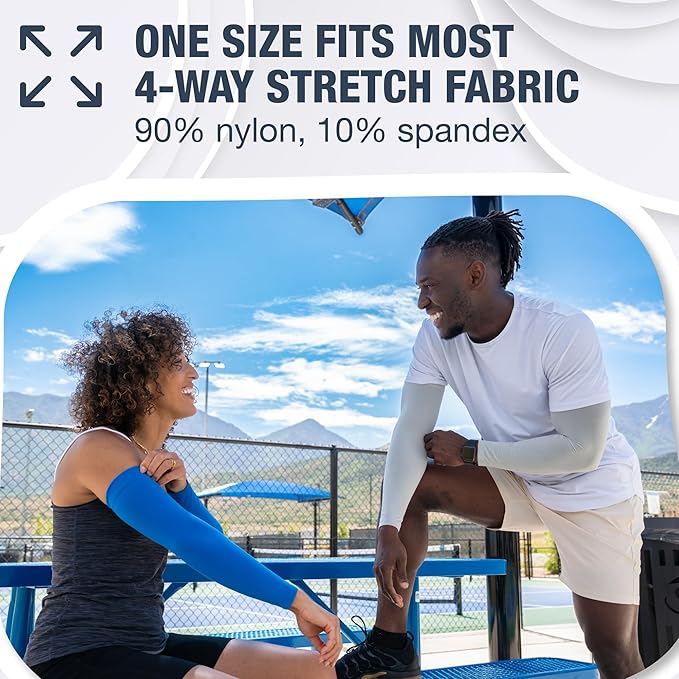 • Superior upf 50+ premium anti slip arm sleeves – our innovative uv sleeves for men and women block over 98% of the sun’s harmful uva and uvb rays, offering full upf 50+ coverage. These sun sleeves for men and women are ideal for shielding yourself from the sun on hot days – whether you’re playing golf, basketball, baseball, volleyball, running, or cycling.