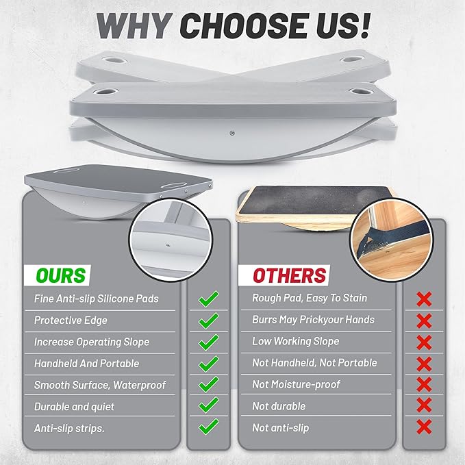 - 【Professional design】 Balanced board size: 17.5*13.4*3.5in. The elliptical holes at both ends of the special design are brought you a hand -to -portable type, and it is more convenient to grab the elliptical holes during training. There is an elliptical hole in the middle of the bottom, which is very convenient. Non -sliding static silicon lip bars can be tilted at 25 degrees with large arcs, and the support volume is as high as 500 pounds.