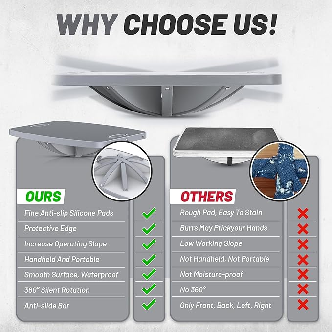 - 【Professional & Compact Design】Balanced board size: 17.5*13.4*3.5in, specially carrying a portable design for you, with elliptical holes at both ends that are convenient to grasp the hand. there is an oval hole in the middle of the bottom and the reliable body is convenient. a non -slip static silicone strip can be tilted at 25 degrees with a large arc, and the support is as high as 500 pounds.