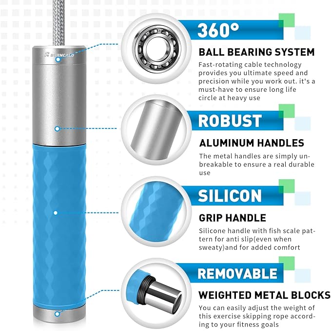 - Our upgraded 360 degree spin high-speed ball bearing system is placed inside the handles to ensure that the weighted jump rope is tangle-free, fast, and smooth. It's a must-have for heavy use, and will ensure a long life cycle.