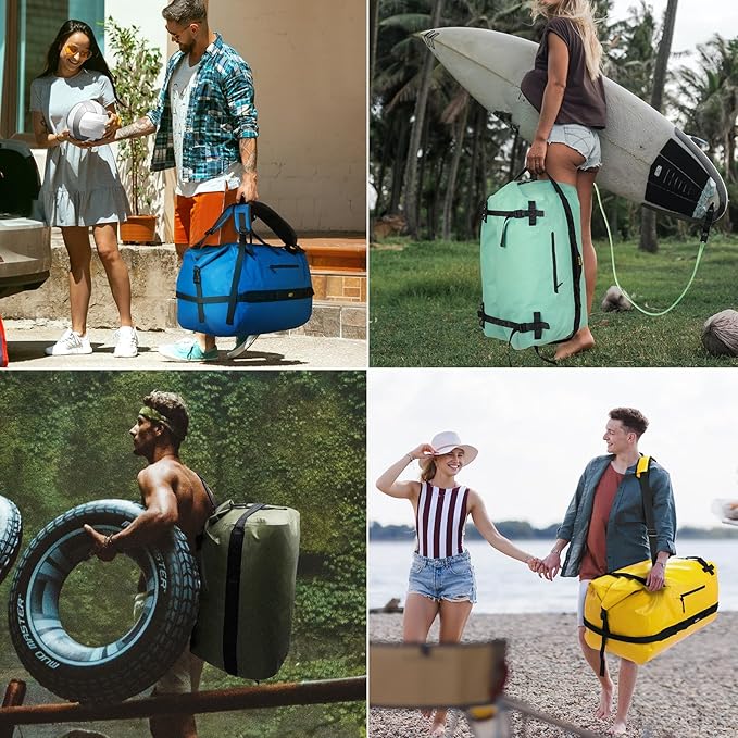 - Convertible Dry Bags with Versatile Carrying Ways --- Designed with adjustable backpack straps that are easily attached or detached, adjustable sternum straps ensure a suitable place to wear, also has an adjustable/removable shoulder strap and 4 sides soft haul handle for multiple carrying ways. It can always meet your different needs, whether it is cross-body, shoulder-body or hand-held