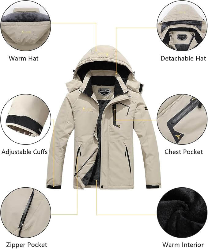 • Functional: Not only is our winter jakcet perfect for skiing and snowboarding, but it also serves as a reliable jacket and rain jacket.The waterproof fabric and sealed seams prevent water from penetrating, making it an excellent choice for outdoor activities in wet weather