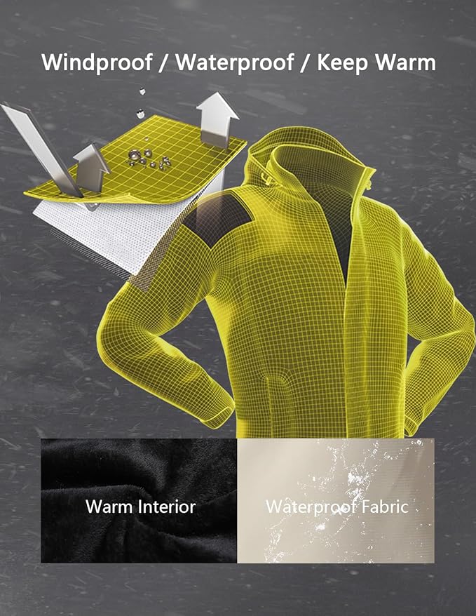• Waterproof: This ski jacket made with a high-quality waterproof fabric that repels water, keeping you dry and comfortable even in heavy rain or snowfall