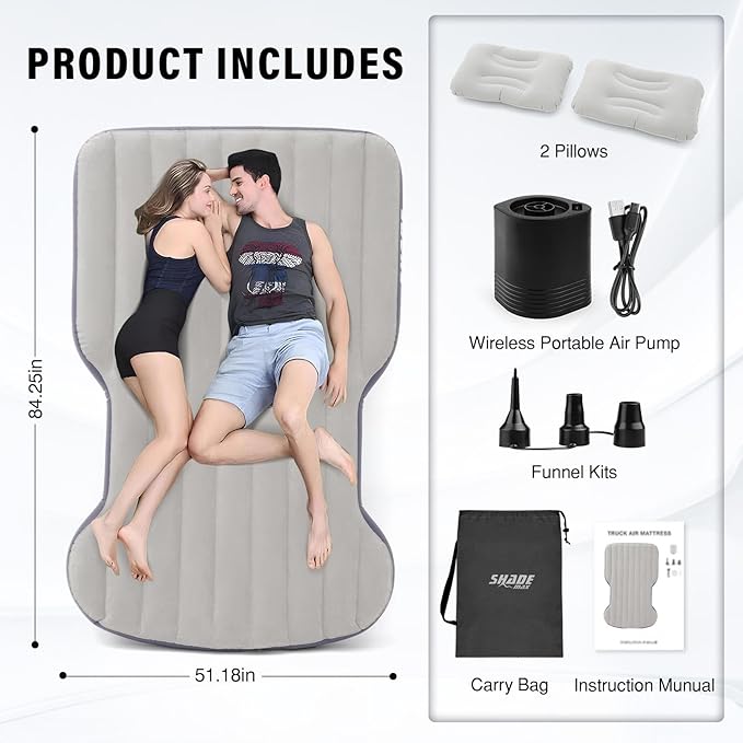 - 【Practical and Functional Air Mattress】:This comfortable inflatable car mattress pad not only can turns the trunk of your car into a comfortable bed and used as a resting bed whether you're in the car, but also can be a outdoors camping tents bed, perfect for adventure, travel, beach or at home.