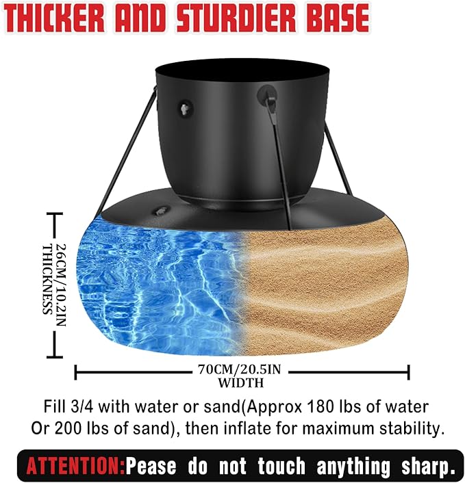 - Strong Rebound Punching Bag for Adults: Stable Base with 70cm in diameter, 26cm thick, and made of 0.5mm high quality PVC. Fill 3/4 with water before full inflation for best stability, Boxing Bag adheres firmly to the ground. Different from traditional sandbags, this standing punching bag has a new rebound design. 4 elastic ropes connect the base and body, enabling quick, stable rebounds, enhancing the effect and stabilizing the base for smoother boxing.