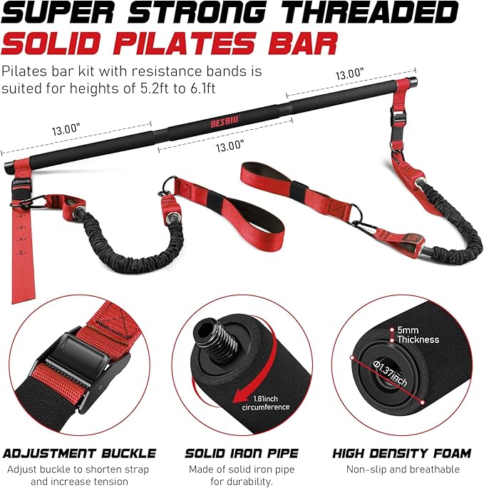 - Included Components : Anti-slip soft pad handles, Soft SBR material padded foot straps, Thicked door anchor, Adjustable padded ankle straps, Pilates bar workout poster, Warning card, Carry bag, Gift box Anti-slip soft pad handles, Soft SBR material padded foot straps, Thicked door anchor, Adjustable padded ankle straps, Pilates bar workout poster, Warning card, Carry b… See more