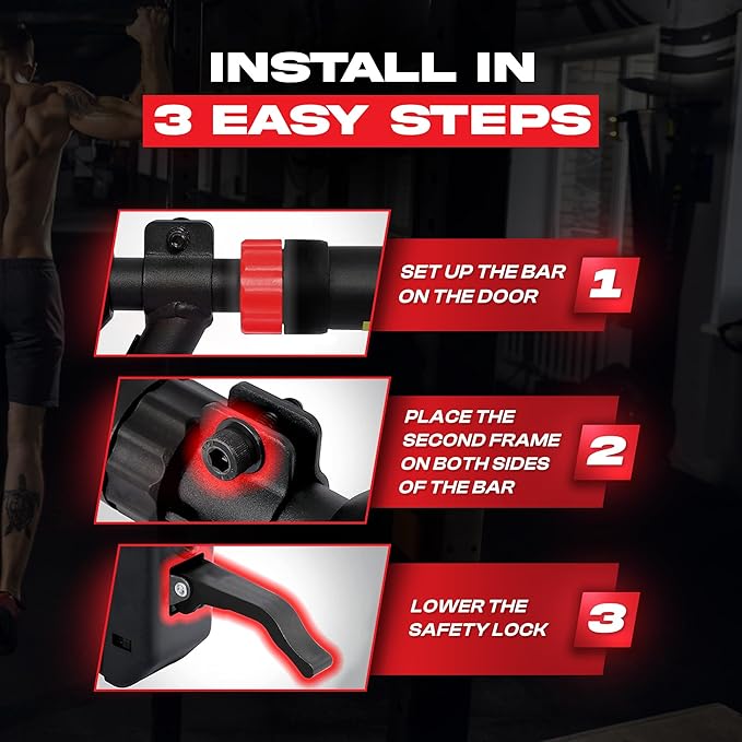 - ✅ EFFORTLESS INSTALLATION: Transform your home into a gym in seconds with the Core Frenzy Pull-Up Bar for doorway —no screws, no drilling, no damage. Just twist and lock into place for a rock-solid grip. Ideal for doorway pull up workouts or as a chin up bar with no wall damage solution.