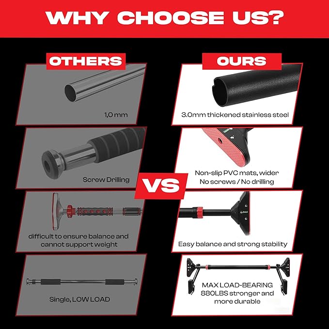 - 🦺 SAFE & STABLE DESIGN: Engineered with a reinforced support frame, the Core Frenzy Pull-Up Bar ensures maximum stability and safety during every rep. Whether you're doing a quick session or an intense workout, you can count on secure, wobble-free performance.