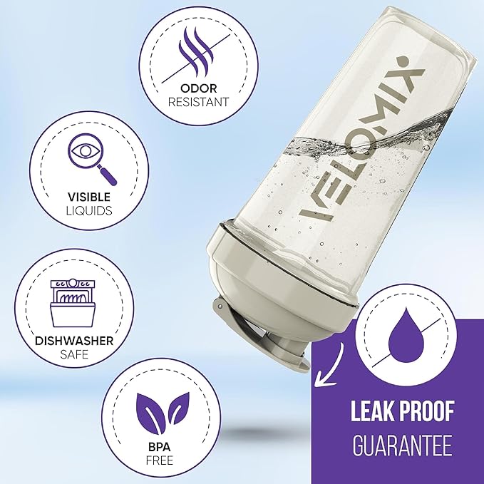 - CLEAN IN A JIFFY - Velomix bottle shaker protein design is for the on-the-move individual. A swift rinse and you're set for another round! More time savoring, less time scrubbing.