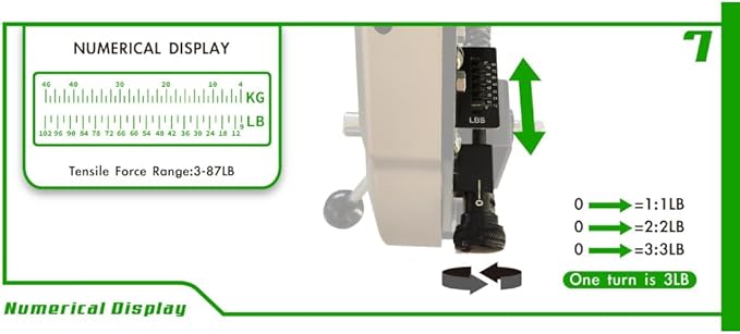 - 4. Tension calibration: Manual head (3 to 89 pounds)