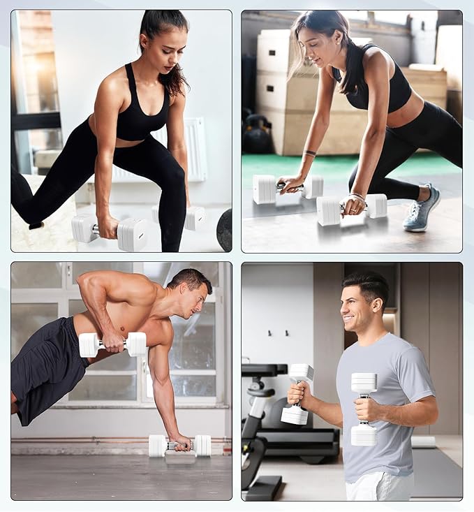 - 4 In 1 Adjustable Hand weights dumbbells set for men women. Dumbbells consists of 8 weight 0.95lbs dumbbell plate, adjustable range is 4lb, 6lb, 8lb, 10lb each weight (A Pair 8lbs 12lbs 16lbs 20lbs).