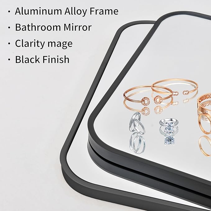 - [High-quality Materials]:DESBING black metal mirror uses 4MM tempered glass, which makes it shatterproof, explosion-proof and safer to use. In addition, coupled with the aluminum alloy frame design, it makes this mirror shatterproof, explosion-proof and rust-proof, perfect for bathroom use.
