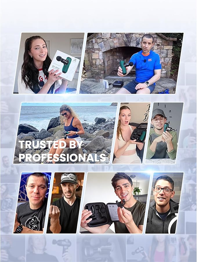 - Developed by Physical Therapists Bob and Brad: Explore warmup, pain relief, and recovery routines from the physical therapists! The Q2 Mini Massage Gun delivers intense massage to provide immediate pain relief, wake up muscles throughout your body, and trigger myofascial release, enhancing your body's ability to regenerate cells and repair itself. FSA/HSA eligible, this professional-grade tool is perfect for managing pain and promoting recovery with trusted expertise.